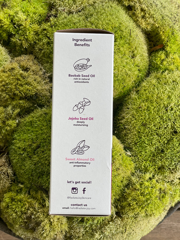 - Baobab Seed Oil- Rich in antioxidants including Vitamin C, Baobab protects your skin from free radical damage while diminishing hyper-pigmentation. Promotes collagen production and hydration.